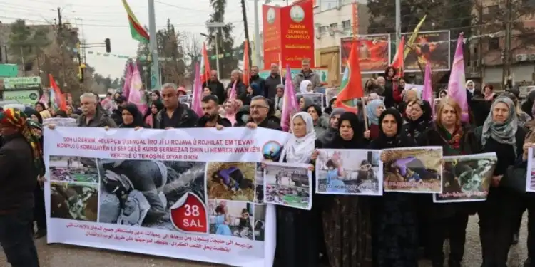 Açıklamada devamla Baas rejimi tarafından 2004 yılında Qamişlo isyanı sırasında yapılan katliam ile DAİŞ’in Şengal ve Kobanê’de gerçekleştirdiği katliamlar hatırlatılarak, Rojava’ya yönelik komploların ve Efrîn halkının göç ettirilmesi ile Türkiye’nin Serêkaniyê ve Girê Spî’deki işgaliyle ortaya konulan komploların da Kürt halkının varlığını hedef aldığı ifade edildi.