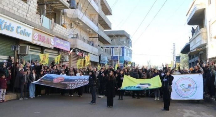 Rojava’da binlerce kişi Abdullah Öcalan’ın özgürlüğü için yürüdü