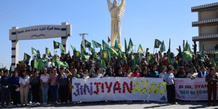 Kuzey ve Doğu Suriye’de kadınlar, “Jin jiyan azadî” direnişinin 2’nci yıl dönümünde alanlara çıktı. Kadınlar,