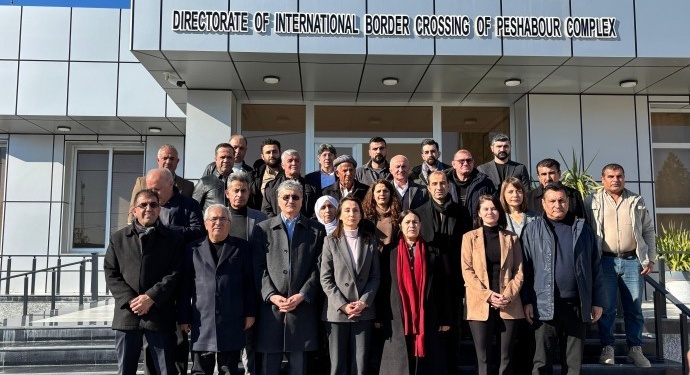 DEM Parti ve DBP’li Eş Genel Başkanlar ile milletvekilleri, baro ve STÖ temsilcilerinin de yer aldığı heyet, Kuzey ve Doğu Suriye’ye geçmek üzere Semêlka Sınır Kapısı’na geçti