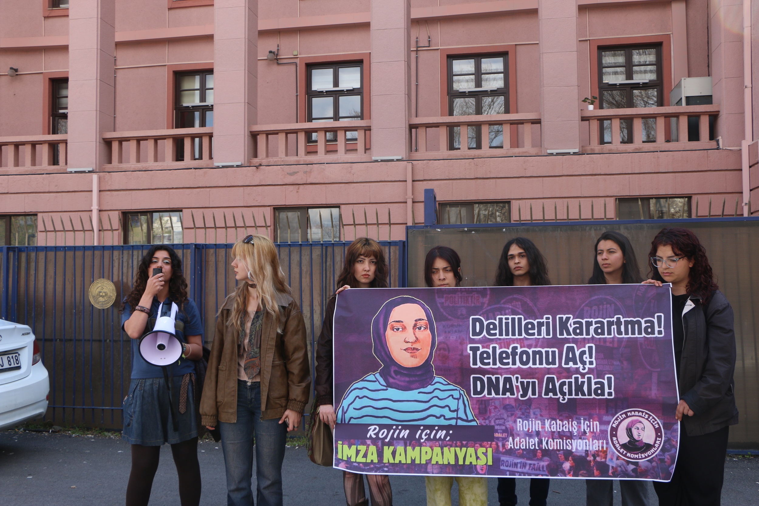 Rojin Kabaiş İçin Adalet Komisyonları, Rojin Kabaiş’in şüpheli ölümünün aydınlatılması için başlattıkları imza kampanyasını Adalet Bakanlığı önünde yaptıkları eylemle duyurdu.