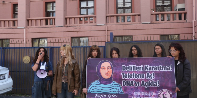 Rojin Kabaiş’in şüpheli ölümünün aydınlatılması için Adalet Bakanlığı önünde açıklama yapan kadınlar, etkin soruşturma yürütülmesi talebiyle imza kampanyası başlattı