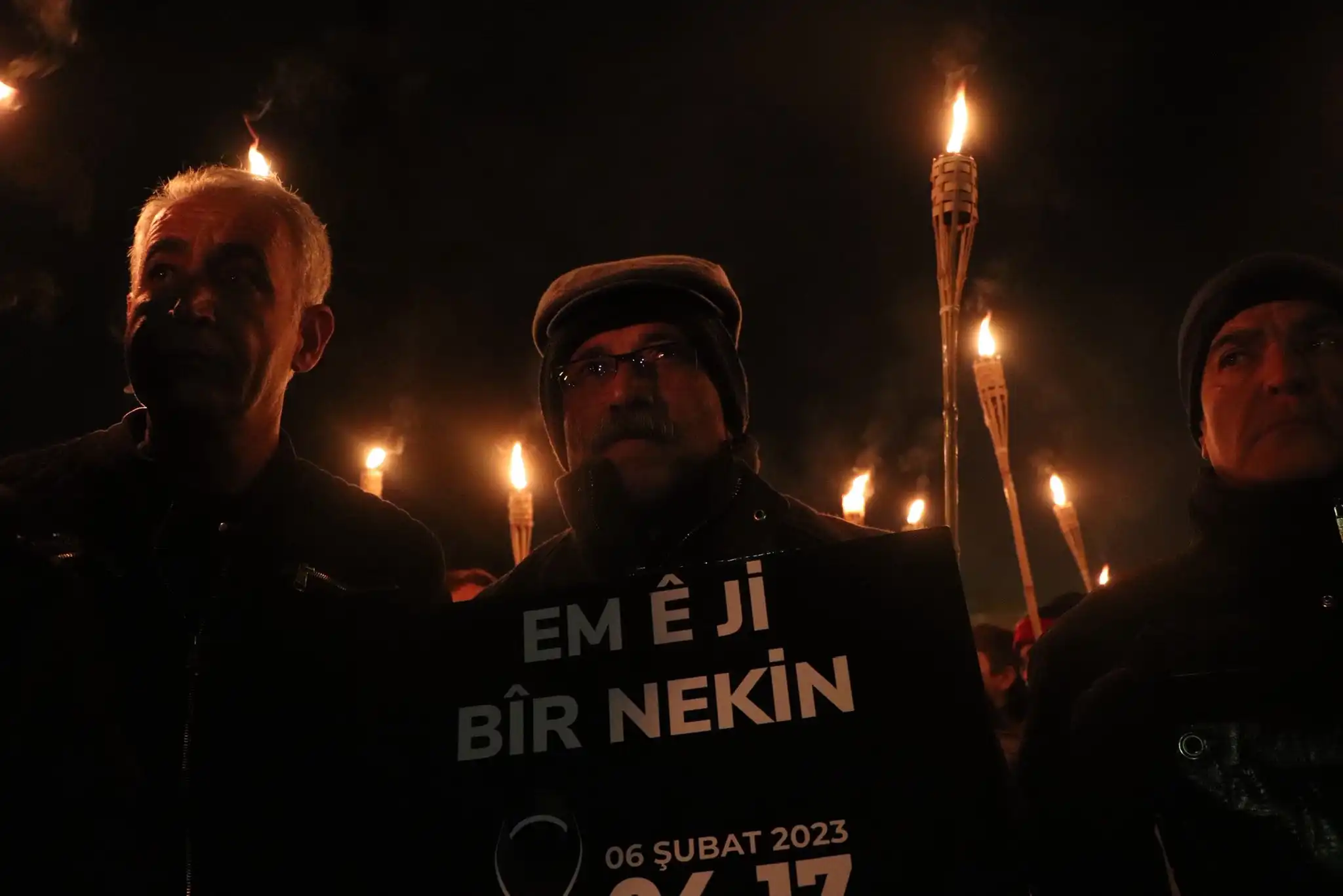 “Deprem değil ihmal öldürür”, “hesap vermeden helalleşme olmaz”, “4.17’nin enkazı vicdandır” dövizleri taşındı ve meşaleler yakıldı.