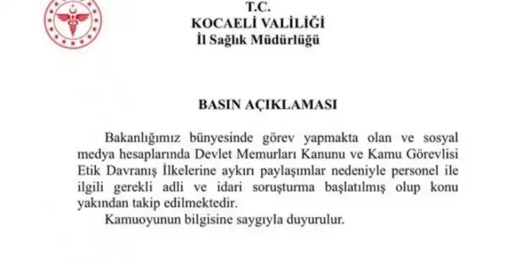 Kocaeli İl Sağlık Müdürlüğü, paylaşım yapan hemşire hakkında adli ve idari soruşturma başlatıldığını açıkladı.