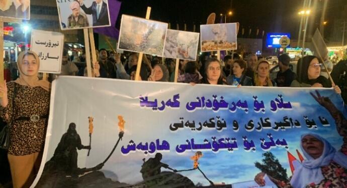 Türkiye’nin KDP ortaklığıyla Federe Kürdistan’a yönelik başlattığı saldırıları protesto etmek amacıyla Süleymaniye’de yüzlerce yurttaş alanlara çıktı.