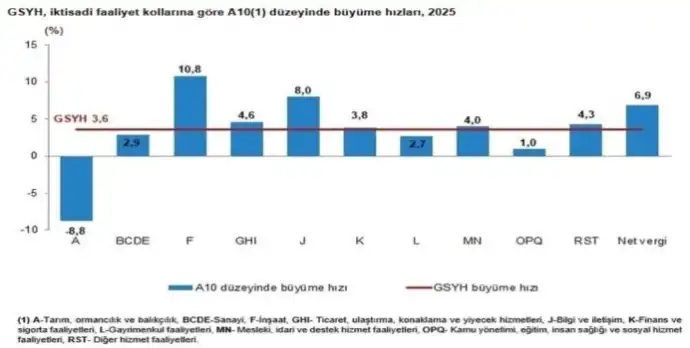 Bakın, 2025 yılında tarım daralıyor, ama Gayrisafi Yurtiçi Hasıla (GSYİH) küçülmüyor, %3,6 artıyor. Daralan sadece tarım sektörü. Bu veri, tarımın alenen çöküşe geçtiğini, çiftçinin ise dizinin üstüne çöktüğünü gösterir.