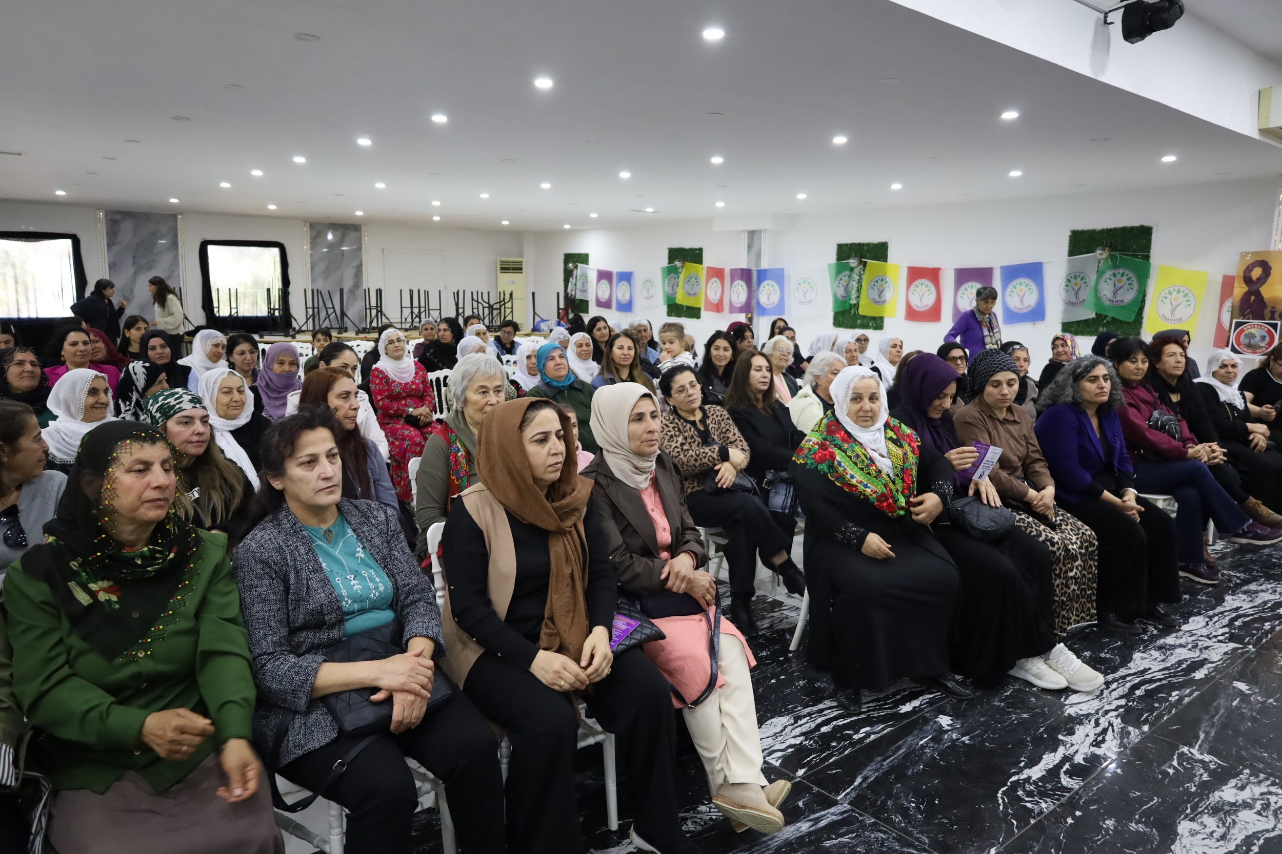 DEM Parti ve Özgür Kadın Hareketi (Tevgera Jinên Azad- TJA), 8 Mart Dünya Kadınlar Günü etkinlikleri kapsamında Kepez’de kadın buluşması düzenledi. Buluşmada, kadın mücadelesine ilişkin sinevizyon gösterimi yapıldı.