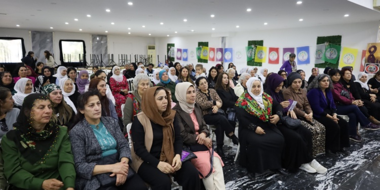 Buluşmada konuşan TJA’lı Sebahat Tuncel, “Rojava’da kadınlar IŞİD vahşetine karşı kendi bedenlerini siper ettiler, mücadele ettiler, direndiler ve kazandılar. İşte bugün eğer biz böyle bir buluşmada bir araya gelebiliyor ve konuşabiliyorsak bu verilen bedeller sayesindedir. Bu mücadele bizimle başlamadı ve bizimle de bitmeyecek. Önemli olan bizden sonraki kuşaklara ne değer bırakacağımızdır” diye konuştu.