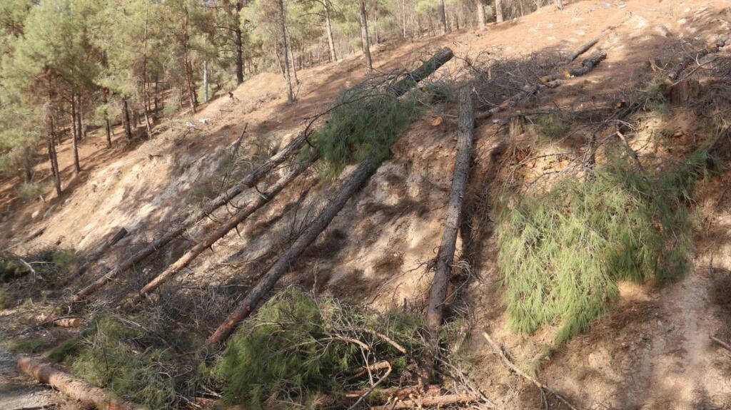 Tarım ve Orman İl Müdürlüğü’nün yapmak istediği yol için ağaçlar işaretleniyor. Ardından işaretli ağaçlar iş makinalarıyla kesiliyor. Yolun yapılacağı alandan metrelerce uzaklıkta bulunan ağaçların da kesilmesi dikkati çekiyor. Binlerce ağacın yol yapımı gerekçesiyle kesileceği öğrenildi.