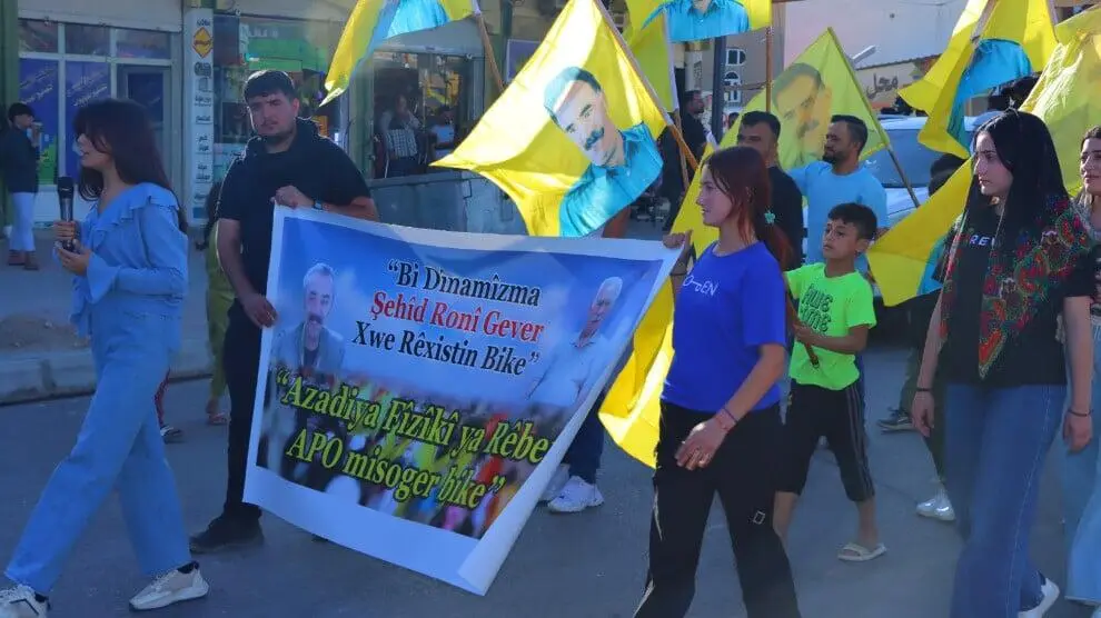 Yürüyüşe Şengal Özerk Yönetimi’ne bağlı kurum ve kuruluşların yöneticileri ile birçok kurum temsilcisi de katıldı. Gençler, yürüyüş boyunca “Em ciwan fedayiyên Ocalan”, “Bê Serok jiyan nabe” ve “Bijî Serok Apo” sloganları attı.