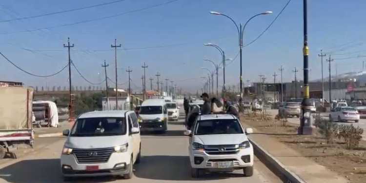Şengal’de gençler, çetelerin saldırılarına karşı Rojava direnişine destek vermek amacıyla genel seferberliğe katılarak, Rojava sınırına doğru yola çıktı