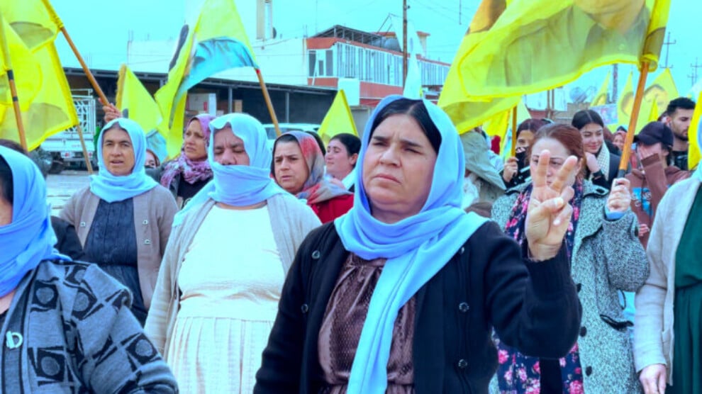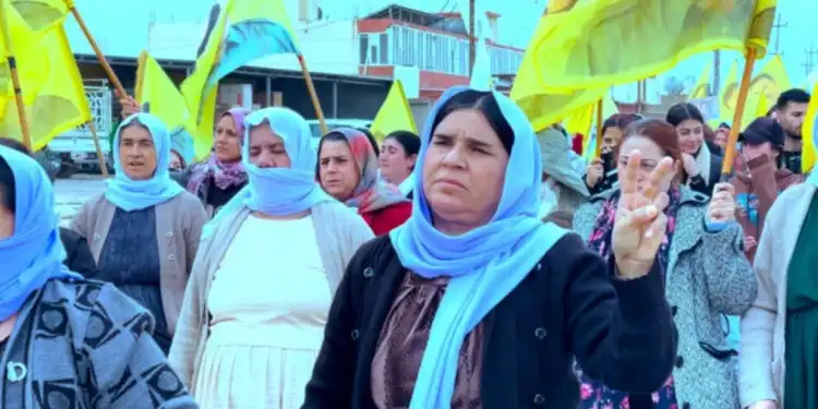 Şengal’deki Arap ve Êzidî halkı, Êzidî Kadınlar Özgürlük Hareketi (TAJE) ve Şengal Demokratik Özerk Meclisi (MXDŞ) öncülüğünde, Türk devleti tarafından destelenen ve uluslararası güçler tarafından onaylanan HTŞ çetelerinin saldırılarına karşı kitlesel bir yürüyüş düzenledi.