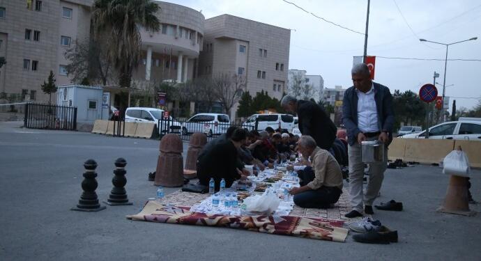 Sabah erken saatlerde Suruç ilçesinde bulunan evlerinden, Urfa Adliyesi önüne gelen anne ve oğlu, oruçlarını nöbet tuttukları alanda açtı. Ailenin “Adalet sofrası”na Halkların Demokratik Partisi (HDP) Urfa Milletvekilleri Ayşe Sürücü, Ömer Öcalan, HDP Urfa İl Örgütü temsilcileri ile çok sayıda partili misafir oldu.