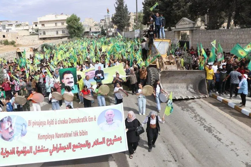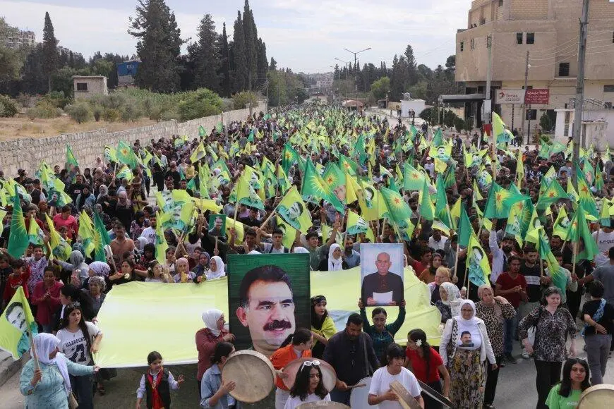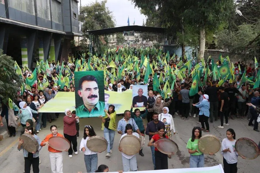 Şêxmeqsûd ve Eşrefiyê mahallelerinde binlerce kişi sokağa çıkarak Abdullah Öcalan’ın fiziki özgürlüğünü istedi