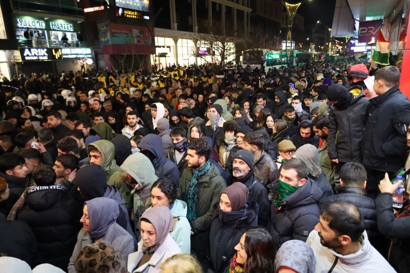 DEM Parti İstanbul İl Eşbaşkanı Çınar Altan, “Her türlü kirli provokasyonla zafer havasına sokanlara buradaki iradeyi göstermek istiyoruz. Bizler açısından bir son yoktur. Savaşanlar bir geleceği inşa ediyorlar yalnızca o mahalle için değil bu toprakların Ortadoğu için bir miras bırakıyorlar. Bu mirası ileriye taşıyacağız” diye konuştu. Kürt halkının olmadığı bir geleceğin inşa edilemeyeceğin ifade eden Çınar Altan, “İki alçak çete kadınların saçına uzanmak istedi. Uyarıyoruz; Kürt kadınlarını saçlarına uzanan eller yerle bir edilecek. Daha öncesinde bu planlar Kobanê’nîn savaşçıları tarafından yerle bir edildi” diye belirtti.