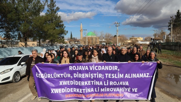Mêrdîn’in Qoser ilçesinde yurttaşlar, HTŞ ve Türkiye destekli grupların Kuzey ve Doğu Suriye’ye yönelik saldırılarını protesto ederek Dirbesîyê sınırına yürüdü. Yapılan açıklamalarda Rojava halkıyla dayanışma vurgusu yapıldı ve saldırılar kınandı.