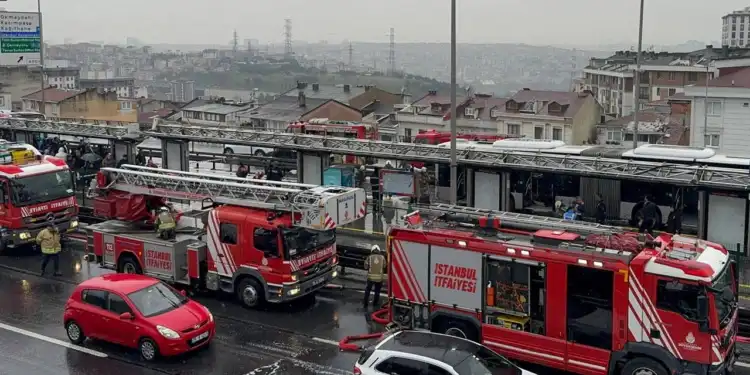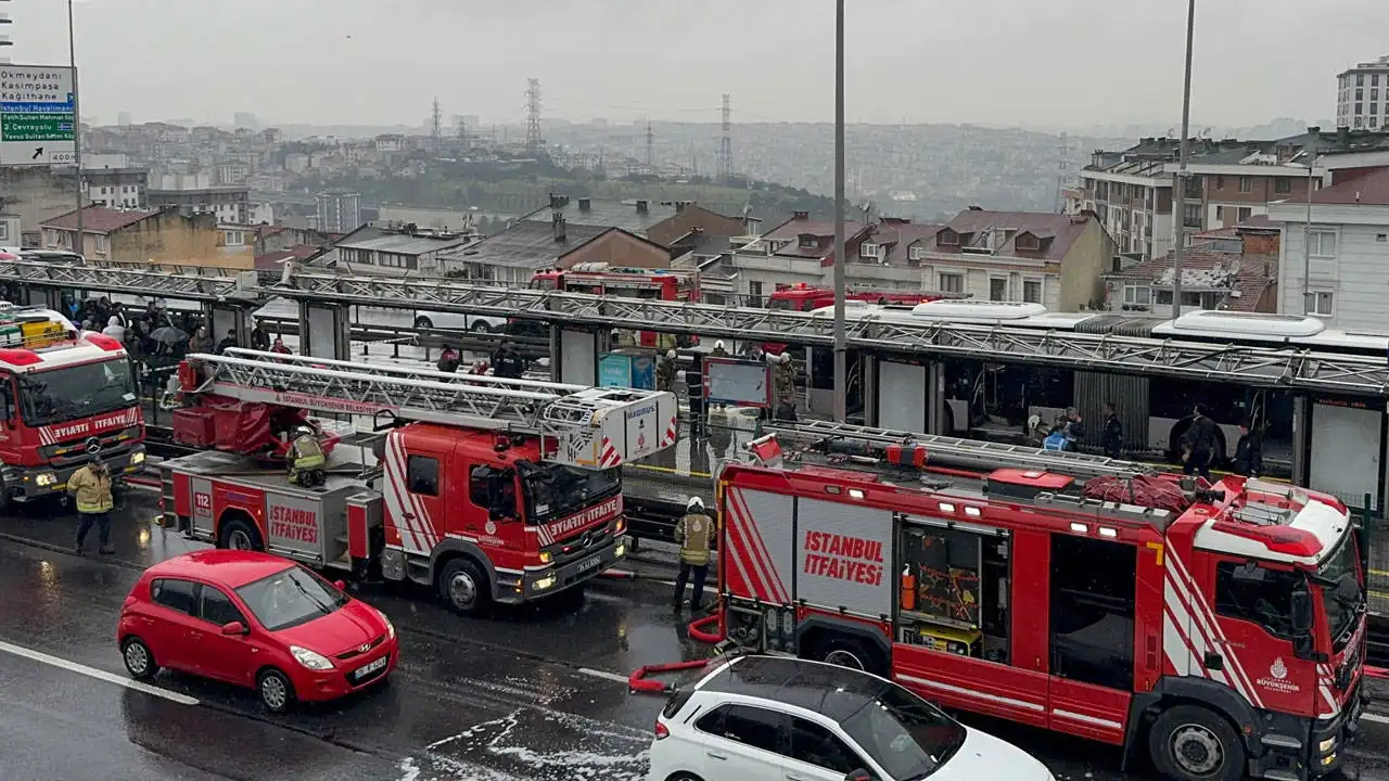 İstanbul’da Şişli Metrobüs Durağı’nda bir metrobüste yangın çıktı