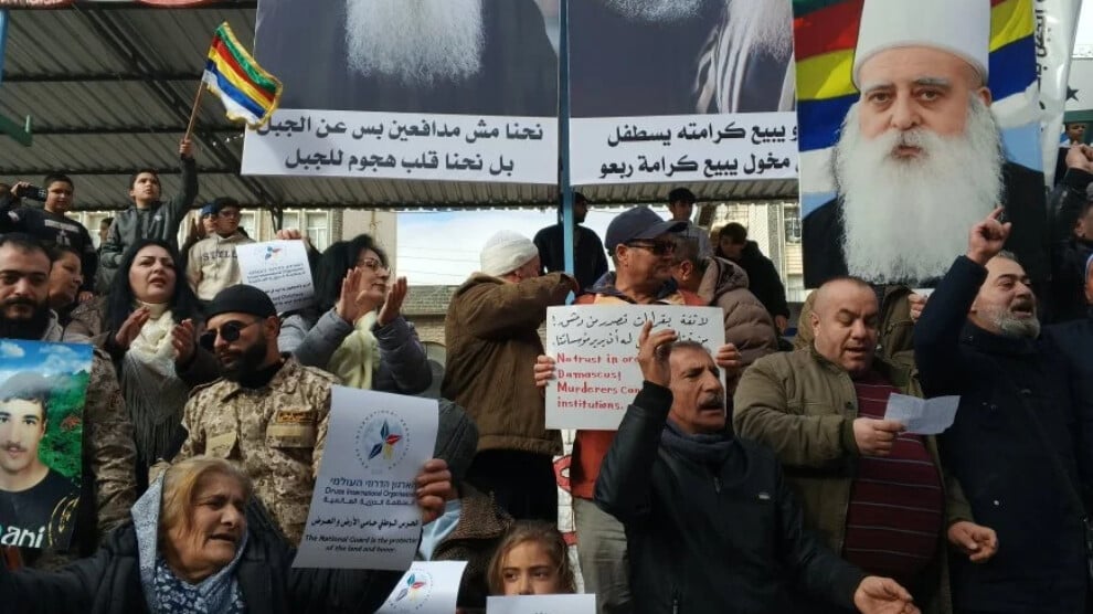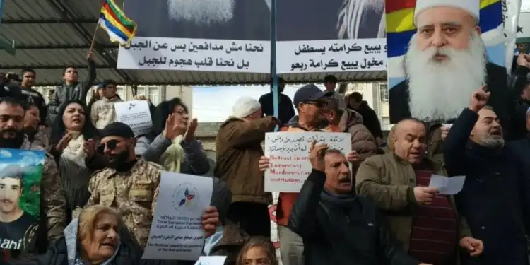 Eylemde Dürzilerin bayrak ve sembolleri taşınarak, taleplerinin HTŞ’ye açık ve net bir mesaj vermek olduğu vurgulandı.