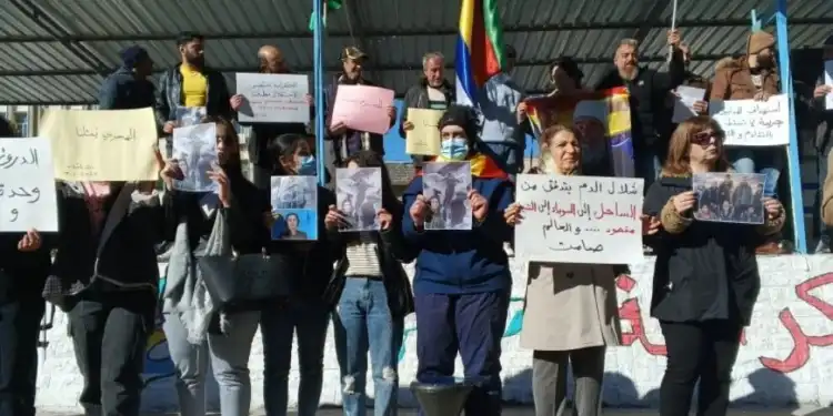 Süveyda’nın El Kerame Meydanı’nda toplayan onlarca kişi Şam Geçici Hükümeti’nin Kuzey ve Doğu Suriye’ye yönelik saldırılarını protesto etti.