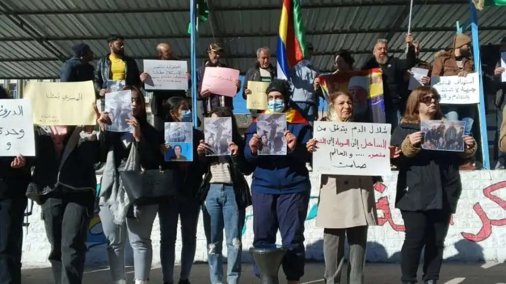 Eylemciler, adalet, barış ve eşitlik pankartları açarak, Suriye halklarının onurunun korunması çağrısında bulundu.