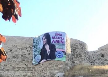 Van Kalesi'ne İran’da katledilen Jîna (Mahsa) Emînî'nin fotoğrafının bulunduğu pankart asıldı İran’da rejim güçleri tarafından Jîna (Mahsa) Emînî'nin katledilmesine dair ...
