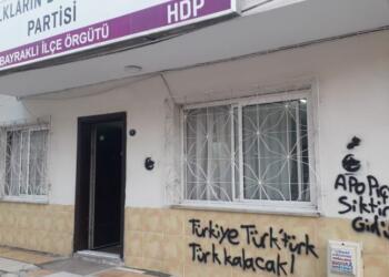HDP Bayraklı İlçe Örgütü binasına yönelik ırkçı gruplar tarafından hakaret içerikli yazılama yapıldı Halkların Demokratik Partisi (HDP) Bayraklı İlçe Örgütü ...