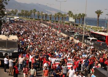 İzmir Büyükşehir Belediyesi'nde çalışan 23 bin işçinin TİS görüşmelerinin tıkanması sonrası başlattığı grev 2'nci gününde sürüyor. İşçiler, 'eşit işe, eşit ...
