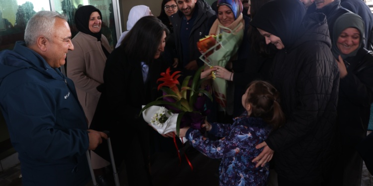 Tahliye olan Eski Belediye Eşbaşkanı Betül Yaşar’a memleketinde karşılama