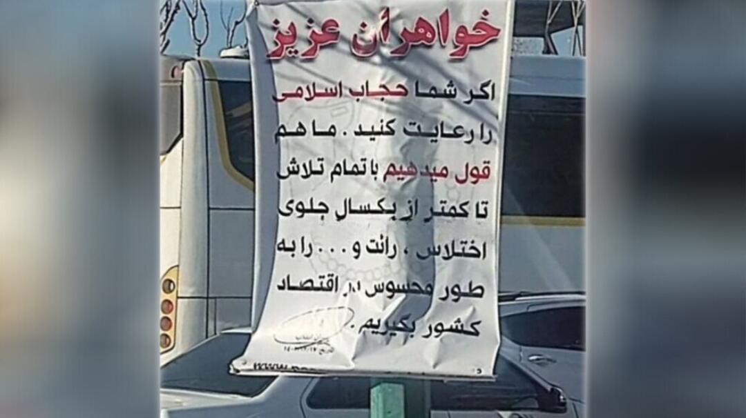 Tahran’ın ana yollarından birine asılan ve “Sevgili kadınlar, eğer İslami hicaba riayet ederseniz biz de yolsuzlukla mücadele edeceğiz” ifadelerinin yer aldığı bir afiş, İran’da tepkiye yol açtı.