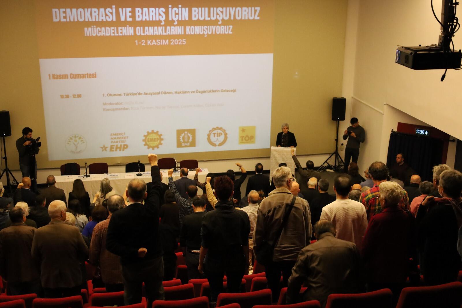 Oturumun son konuşmasını yapan Sosyalist Yeniden Kuruluş Partisi (SYKP) Eş Genel Başkanı Mertcan Titiz ise barış ihtimaline sahip çıkmaları gerektiğini dile getirerek, “Kürt Özgürlük Hareketi’nin 50 yıllık ortak mücadelesiyle bugün bu ihtimal ortaya çıktı. Eğer bu süreci iktidarın umudu haline getirirsek ve Kürt halkının yanında mücadele etmezsek sosyalistler olarak büyük bir hata yaparız. Sayın Öcalan’ın çağrısıyla süreç yeni bir aşamaya geçti. Bir araya gelmeli ve mücadele yöntemlerini belirlemeliyiz. Artık birlikte bir mücadele bir ihtiyaçtır” diye belirtti.