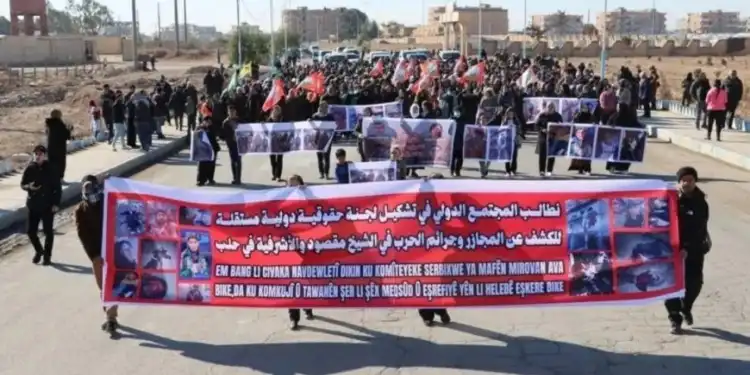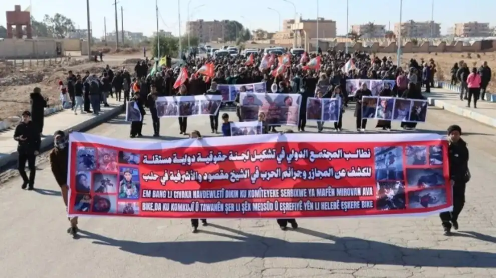 HTŞ ve SMO’nun Türkiye’nin desteğiyle Kuzey ve Doğu Suriye halklarına yönelik başlattığı soykırım saldırılarına karşı tepkiler sürüyor. Tebqa halkı ve Efrînli göçmenler, Halep’in Şêxmeqsûd ve Eşrefiyê mahalleleriyle dayanışmalarını dile getirerek, saldırıların sona erdirilmesini ve halkın korunmasını talep etti.