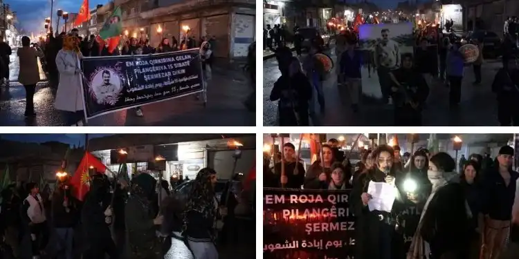 Devrimci Gençlik Hareketi ile Genç Kadınlar Birliği, Kürt Halk Önderi Abdullah Öcalan’a yönelik 15 Şubat 1999’da gerçekleştirilen Uluslararası Komplo’yu kınamak amacıyla Tirbespiyê’de meşaleli yürüyüş düzenledi.