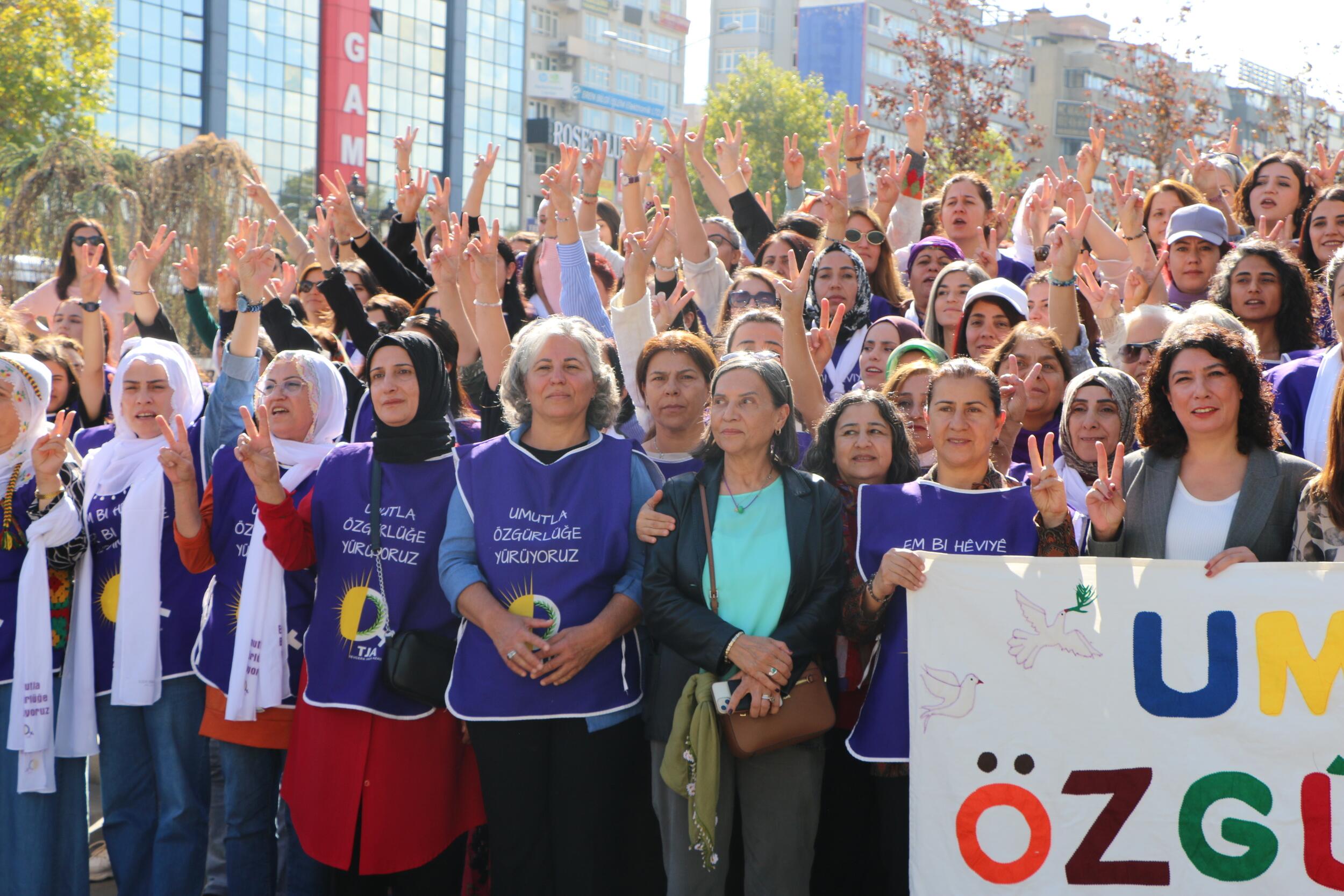 Tevgera Jinên Azad (TJA) öncülüğünde “Umutla özgürlüğe yürüyoruz” şiarıyla 1 Ekim’de Amed’den başlatılan yürüyüş, bugün Ankara’da sona erdi. Kadınlar, yürüyüş boyunca geçtikleri her kentte halkın ve özellikle kadınların coşkulu desteğiyle karşılandı.