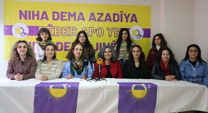 Toplantıda açıklamayı Ayşe Aksoy okudu. Kapitalist modernitenin krizine karşı “Jin, jiyan, azadî” mücadelesiyle sarsan kadın direnişinin tarihsel bir eşikte olduğunu belirten Ayşe Aksoy, “Ortadoğu kaosa sürüklenirken, halklar kimliksizleştirilmek istenirken ve kadın yaşamı sömürgeci erkek akıl tarafından kuşatılmışken; biz kadınlar için tek çıkış yolu demokratik modernite paradigmasını toplumsallaştırmak, barış ve demokratik toplumu inşa etmektir” denildi. Barış ve Demokratik Toplum Süreci’nin Kürt Halk Önderi Abdullah Öcalan’ın özgürlük koşullarının sağlanmasıyla ilerleyebileceğini söyleyen Ayşe Aksoy, “Kadınlar olarak özgürlük ve özgür önderlikle buluşmanın barışı sağlayacağı, özgürlüklerin ve demokrasinin yolunun açılacağına inanıyoruz. Marmara’nın fabrikalarından Mezopotamya’nın topraklarına tüm toplum barışa susamıştır. Barışın yolu İmralı’dan, Sayın Öcalan’ın özgürlüğünden geçer. Halkların önderi Sayın Öcalan’ın fiziki özgürlüğü, bizler için sadece siyasi bir talep değil, demokratik, ekolojik ve kadın özgürlükçü bir yaşamın inşası için hayati bir zorunluluktur” diye belirtti.