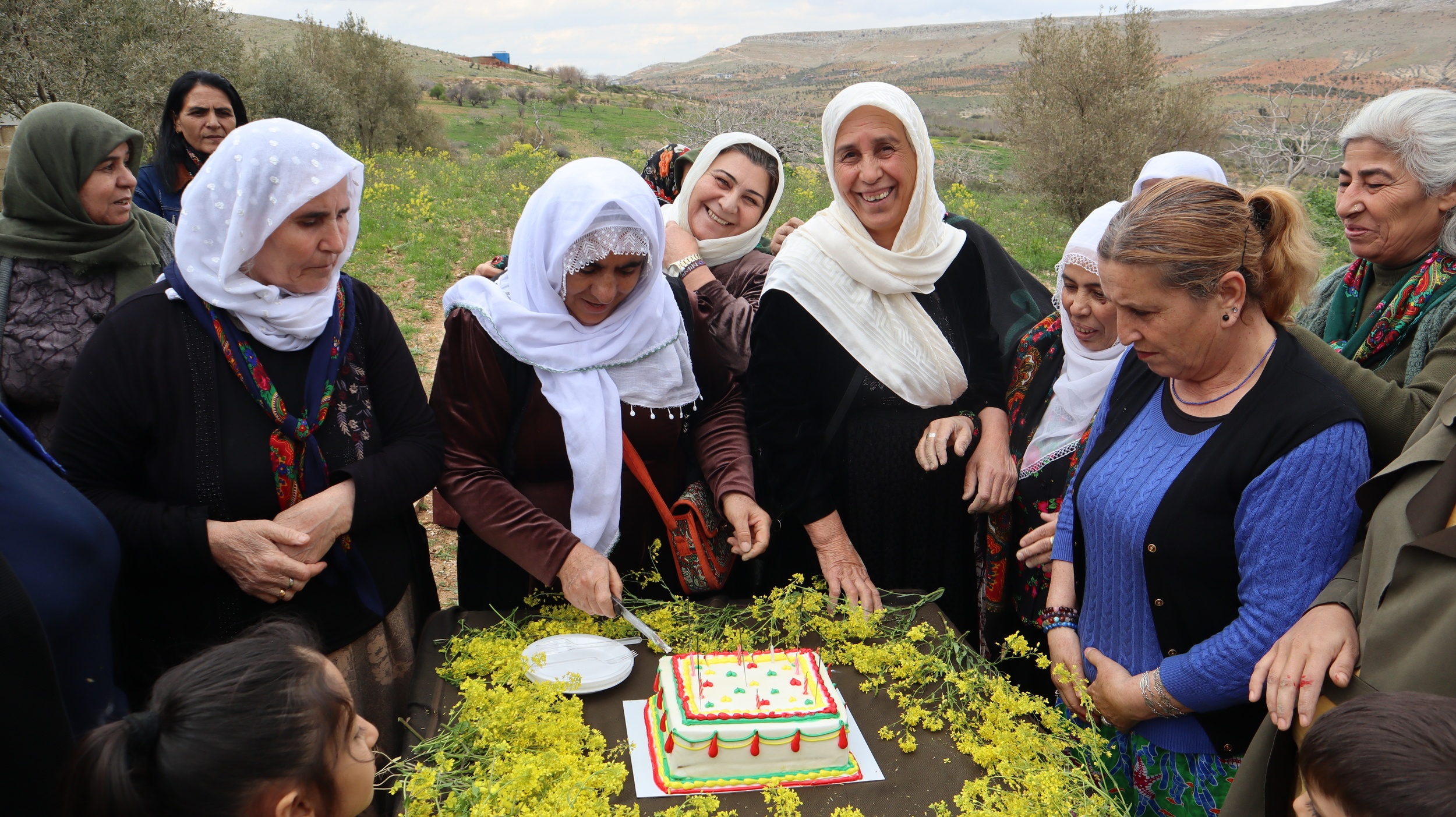 Etkinlik, bir bahçede düzenlenen fidan dikmeyle başladı. Abdullah Öcalan’ın “Ağaç dikmek, yaşamı yeşertmektir” perspektifiyle hareket eden kadınlar, barışın ve kökleşmenin simgesi olan zeytin fidanlarını toprakla buluşturdu. Fidan dikimi sırasında dualar edilerek, dikilen her ağacın coğrafyaya barış ve huzur getirmesi temennisinde bulunuldu. Fidan dikiminin ardından kutlama alanına geçildi. Sarı, kırmızı ve yeşil renklerle süslenen doğum günü pastası, Barış Anneleri tarafından zılgıtlar eşliğinde kesildi. Etkinlik boyunca kitle sık sık, “Bijî Serok Apo”, “Rojbûna te pîroz be ey Serok Apo” ve “Bê Serok jiyan nabe” sloganlarını attı.