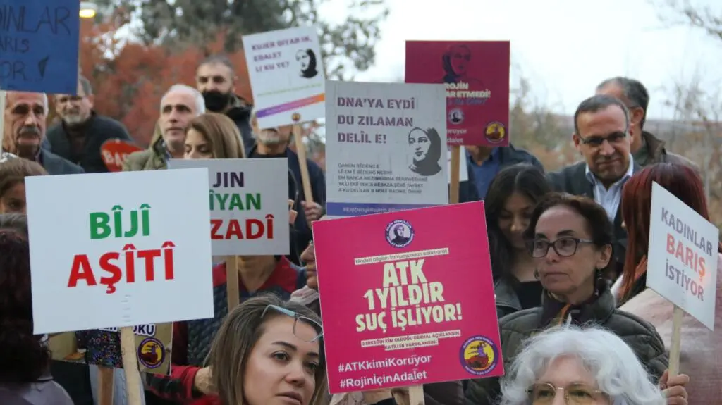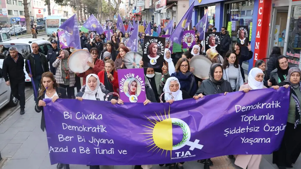 Açıklama metnini TJA Mêrdîn Sözcüsü Hatice Öncü okudu. DEM Parti Milletvekili Beritan Güneş Altın, kadınların kendi yaşamlarının davasını yürüttüklerini belirterek, yaşanan kadın cinayetlerinin kadın kırımına ulaştığını söyledi. Beritan Güneş, “Kadınlar bugün burada daha fazla Rojin Kabaiş olayının yaşanmamasını istiyor. Kadınlar bugün burada kadınların katillerini arıyor, hakikati arıyor, kadın haklarını arıyor” dedi. Kürt Halk Önderi Abdullah Öcalan’ın dünyada savaşın ilk erkeğin kadının komün yaşamına dönük gerçekleştirdiği saldırı ile başladığını belirten Beritan Güneş, Barış ve Demokratik Toplum süreci ile “Jin, jiyan, azadî” felsefesi ile buna son vereceklerini söyledi.
