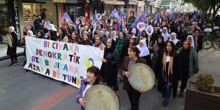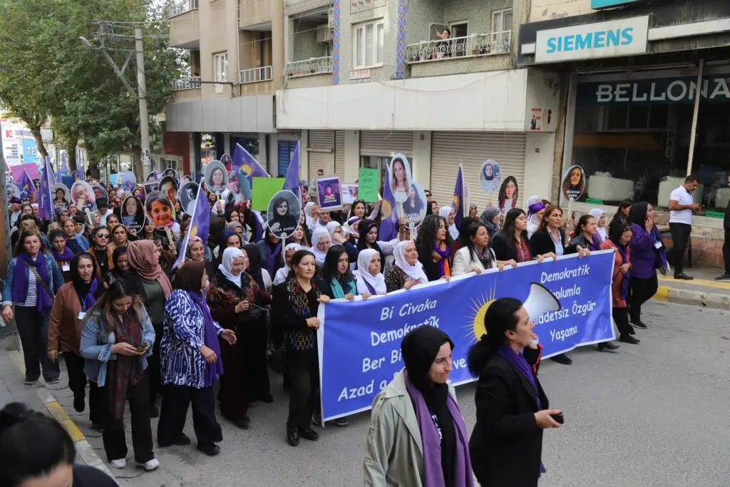Cumhuriyet Caddesi’nde basın açıklaması yapan kadınlar, ardından sloganlarla DEM Parti il binasına kadar yürüyüş gerçekleştirip etkinliği sonlandırdı.