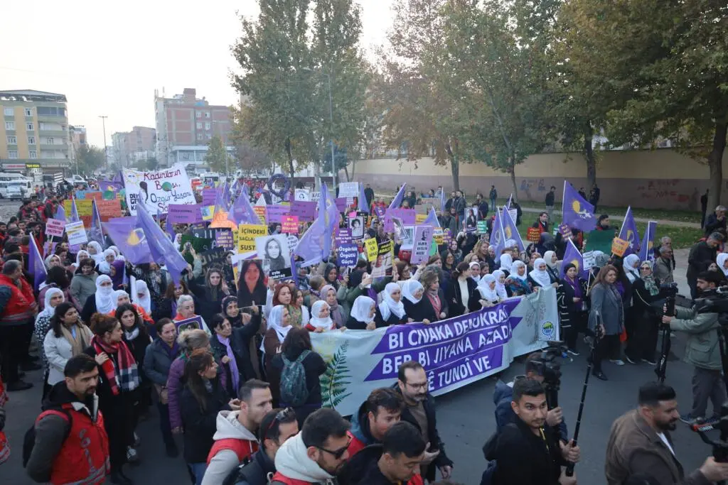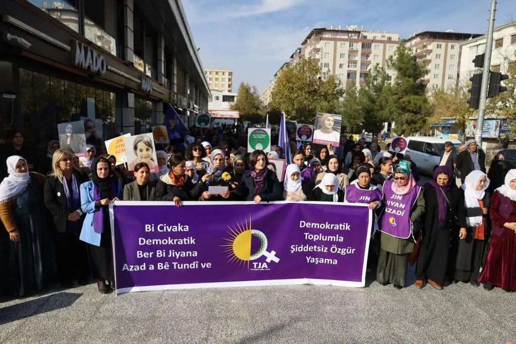 Özgür Kadın Hareketi (Tevgera Jinên Azad-TJA) öncülüğünde Amed’de 25 Kasım kapsamında “Demokratik Toplumla şiddetsiz özgür yaşama” şiarıyla Eski Cezaevi önünden Ofis semtine kadar yürüyüş düzenliyor.