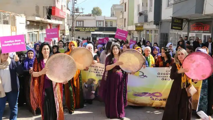 Özgür Kadın Hareketi (Tevgera Jinên Azad-TJA) 8 Mart Dünya Kadınlar Günü kapsamında Amed’in Xana Axpar (Çınar) ilçesinde, “Direnişle özgürleşiyor demokratik toplumu örüyoruz” şiarıyla yürüyüş düzenledi. Demokratik Bölgeler Partisi (DBP) ilçe binası önünde bir araya gelen kadınlar, buradan Nujiyan Parkı’na kadar yürüdü. Yöresel kıyafetleriyle yürüyüşe katılan kadınlar, yürüyüş boyunca sık sık “Jin, jiyan, azadî”, “Jin, jiyan, azadî; azad bike rebertî” ve ” Bijî berxwedana jinan” sloganlarını attı.