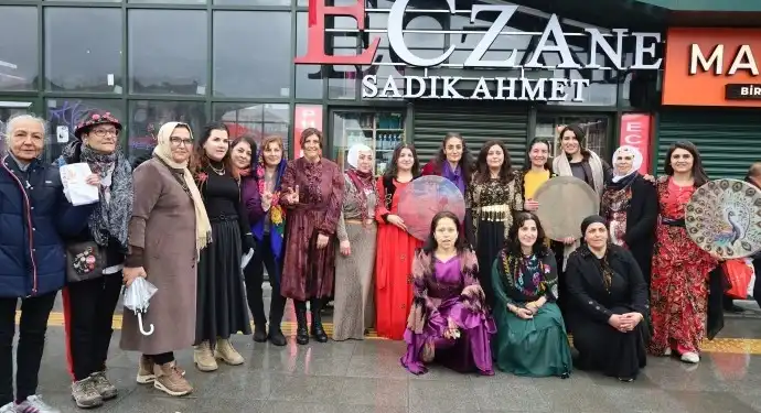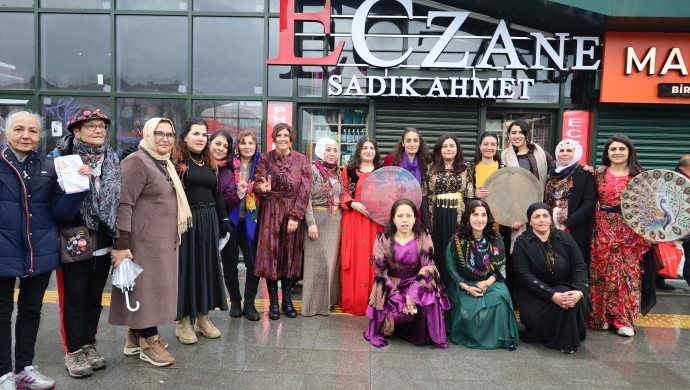 Yöresel kıyafetler giyen kadınlar, erbane eşliğinde halkı Newroz’a davet etti. “Jin, jiyan, azadî” ve “Newroz pîroz be” sloganları atan kadınlar, bildiri dağıtımı sırasında şarkılar eşliğinde halaya durdu. Kadınlar, “Tüm kadınları, gençleri, emekçileri tüm herkesi 22 Mart Pazar günü saat 11.00’de Yenikapı alanına bekliyoruz” çağrısında bulundu.