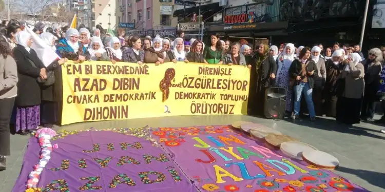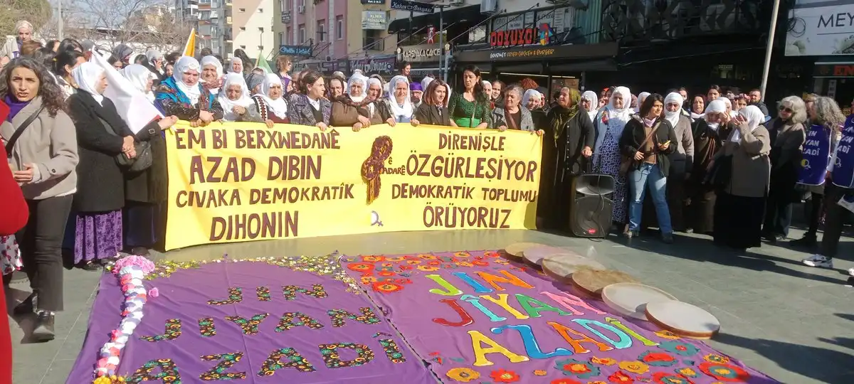 “Biz, özgürlük, barış ve demokratik toplum için güçle, coşkuyla ve heyecanla 8 Mart’ın alanlarına ve meydanlarına yöneliyoruz. Biliyoruz ki kadın özgür olmadıkça hiçbir toplum da özgür olmaz.”