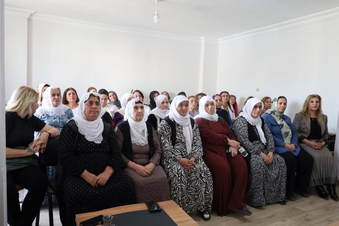 Cezaevlerinin kadınlar açısından hem baskı hem de direniş alanı olduğunu vurgulayan Sara Kaya, sözlerini şöyle sürdürdü: “Yirmi yıldan fazladır çalışıyorum; bir halkın iradesi olmaya yönelince devlet gözünde suçlu hale geldim. Hapse girmeden önce hiçbir şeyim yoktu, çıktıktan sonra halkın temsilcisi olduk ve yolumuz yine hapisle kesişti. Sekiz yıldan fazla Mardin, Ankara, Wan ve Tarsus hapishanelerinde kaldım, sürgün sevklerle bizi ve ailelerimizi cezalandırdılar. Bu seviyeye kolay gelmedik, çok bedel verdik, her zaman direndik ve bir adım geri atmadık” dedi.