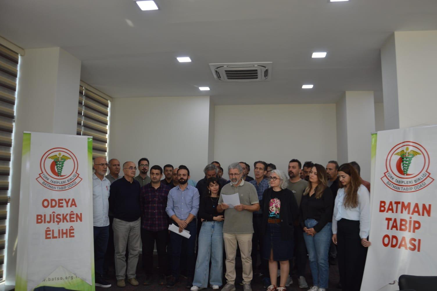 Êlih (Batman) Tabip Odası, sağlıkta derinleşen eşitsizliklere ve sağlık hakkının piyasalaşmasına ilişkin Batman Sanayi ve Ticaret Odası’nda (BATSO) açıklama yaptı. Açıklamaya Türk Tabipleri Birliği (TTB) Merkez Konsey üyelerinin yanı sıra Bölge Tabip Odaları da katıldı.