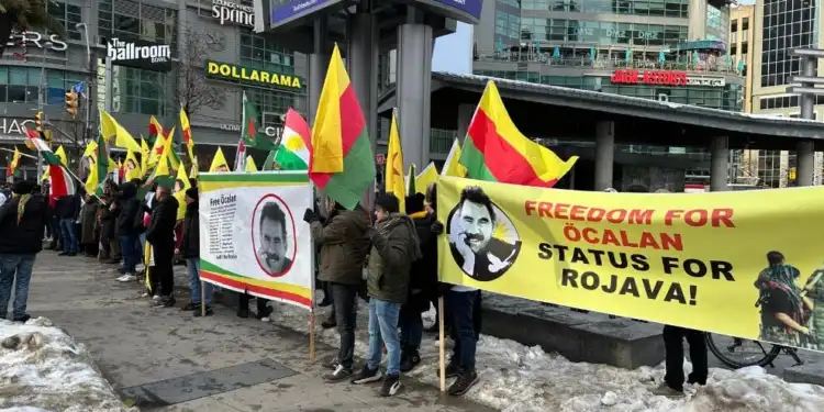 Kanada Demokratik Kürt Toplum Merkezi (DKTM) tarafından organize edilen eylemde, Kürt Halk Önderi Abdullah Öcalan’ın özgürlüğü ve Rojava’ya statü talep edildi.