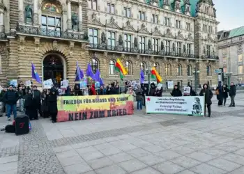 Rojbin Kadın Meclisi’nin Hamburg’da Kuzey ve Doğu Suriye’ye yönelik saldırıları protesto etmek için yaptığı eyleme HTŞ’li gençler saldırdı. Alman polisinin saldırganları korumasına kadınlar tepki gösterdi...