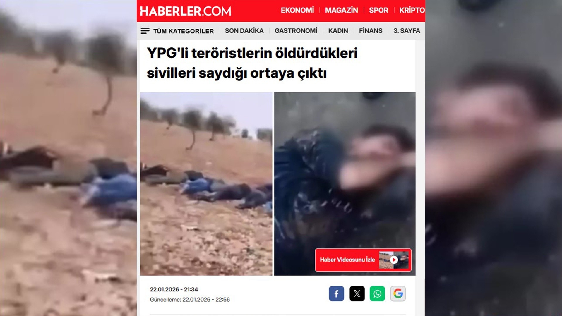 “Haberler.com” adlı site, Mêrdîn’in (Mardin) Nisêbîn (Nusaybin) ilçesinde sınır hattında darp edilen Diyar Koç’un fotoğraf ve görüntüsünü de “öldürülen sivil” olarak servis etti.