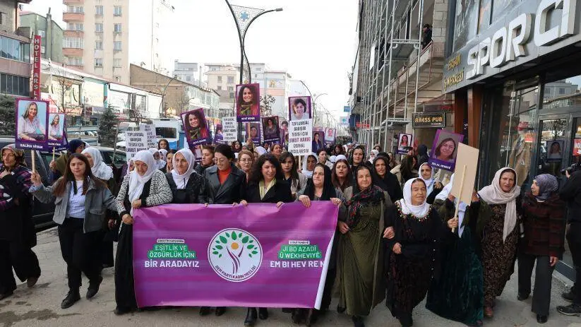 “Şiddettin karşısında eşitlik ve özgürlük için bir aradayız” pankartının açıldığı yürüyüşte, sloganlarıyla başlayan yürüyüşün ardından açılış konuşmasını yapan DEM Parti Colemêrg İl Eşbaşkanı Evin Tan, kadın mücadelesinin gün geçtikçe büyüdüğünü vurguladı.