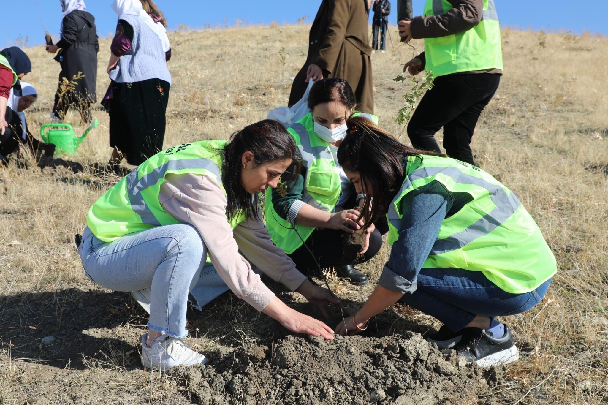Mavi Bayraklı Halk Plajı yanında gerçekleştirilen fidan dikimine Tuşba Belediyesi Eşbaşkanı Hanım Akkoş, Barış Anneleri, belediyenin kadın meclisi üyeleri ve çok sayıda kadın katıldı.