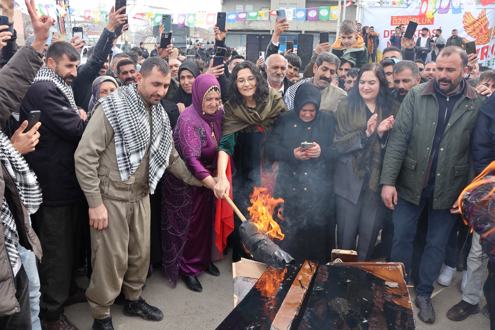 Dutax Belediye Başkanı Fevzi Sayan’ı eleştiren Nejla Demir, “Arkadaşlarımız günlerdir bu Newroz etkinliği için emek verdi, hepsine teşekkür ediyoruz. Ancak Dutax Belediye Başkanı Newroz kutlamasını sekteye uğratmak istedi. Newroz bütün Kürtlerin ortak mirasıdır. Tutax’ta yanacak olan Newroz ateşini söndürmeye sizin çapınız yetmez. Değerli Tutax halkı, Newroz ateşini yakacak, yükseltecek; birliğini ve beraberliğini büyütecektir” diye ifade etti.