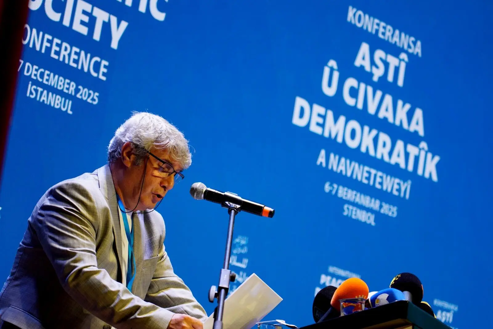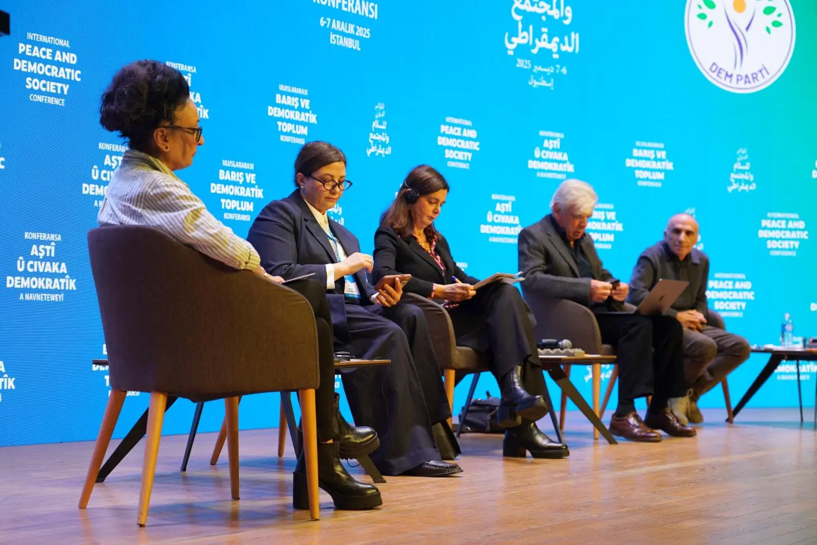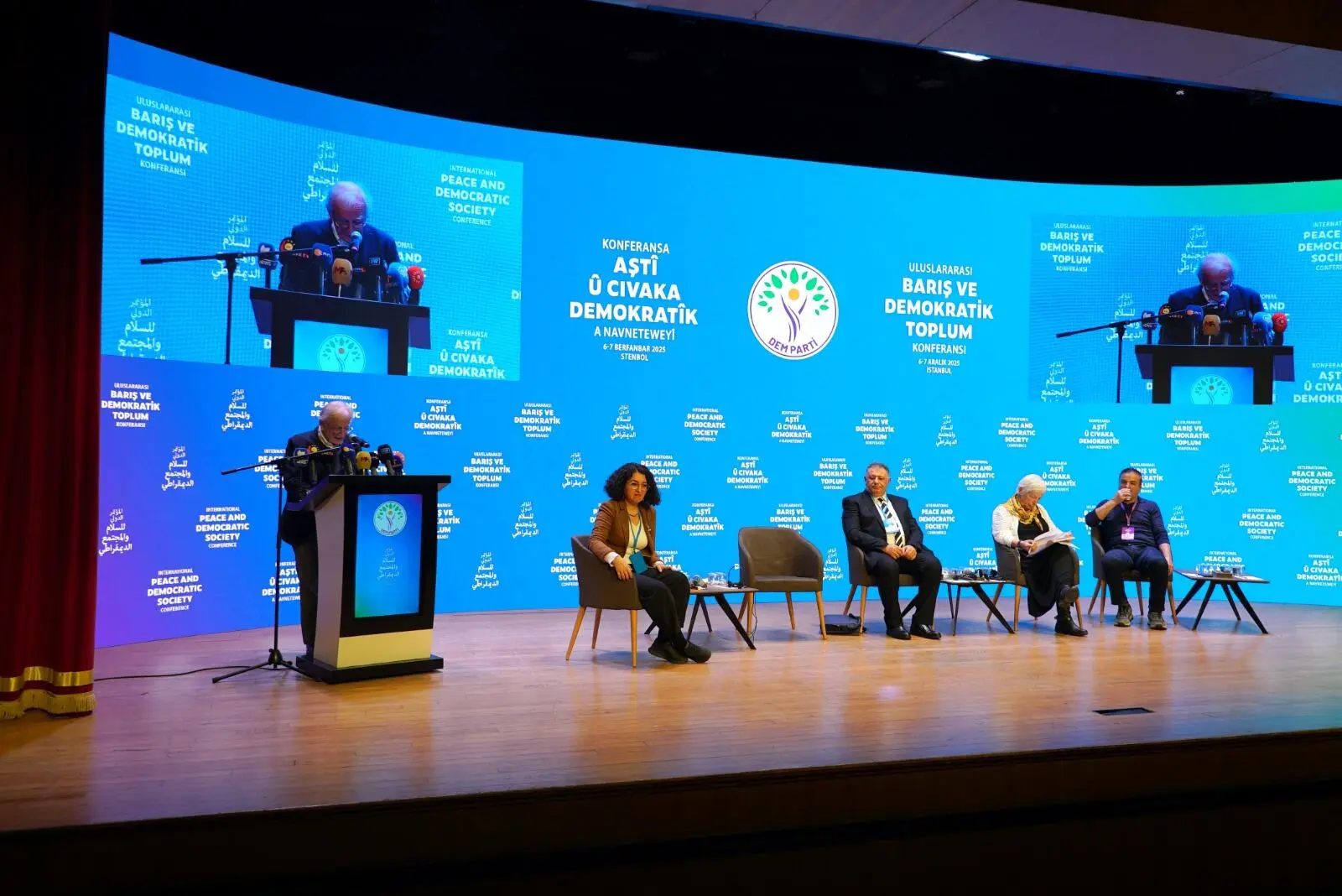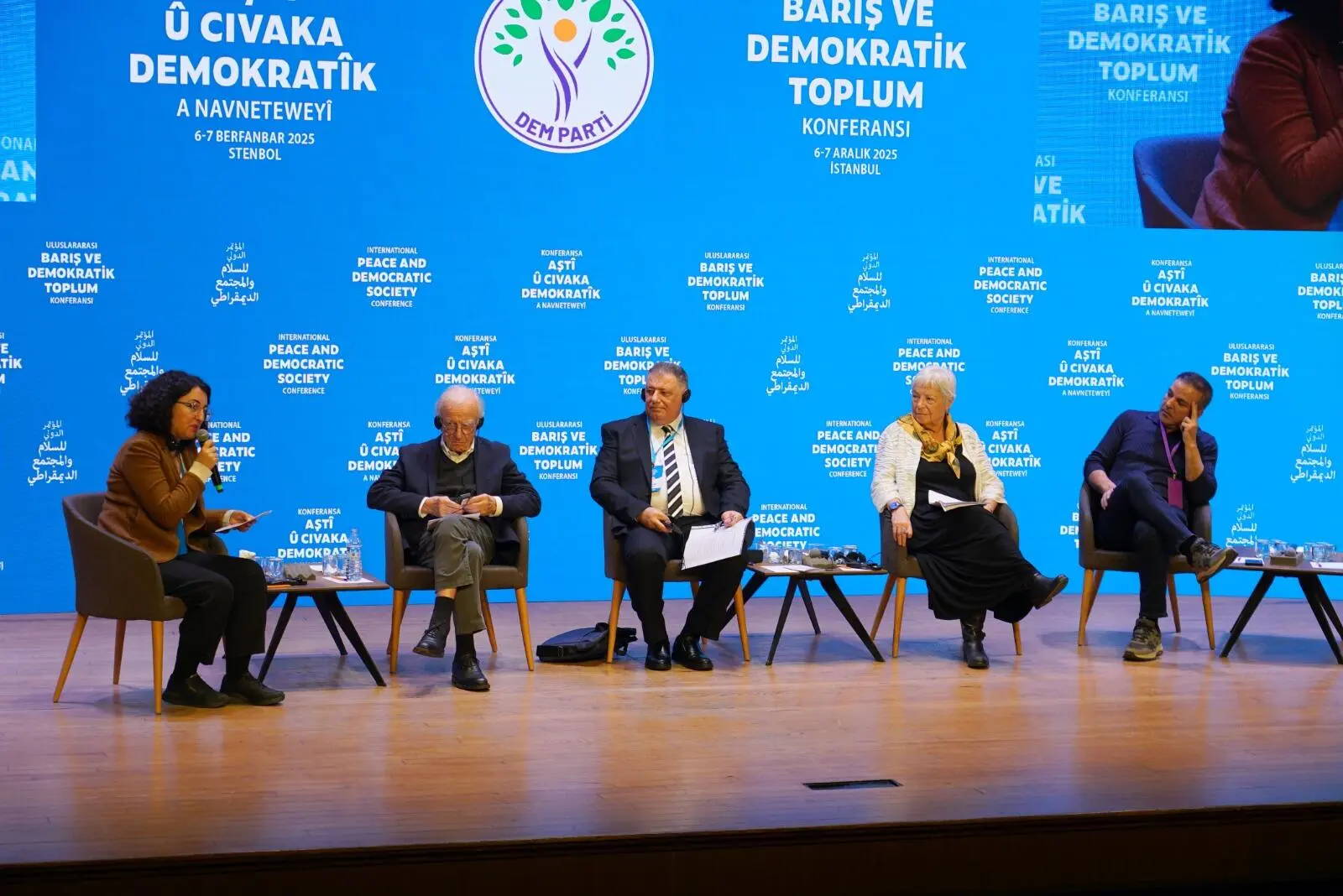Halkların Eşitlik ve Demokrasi Partisi (DEM Parti), 6-7 Aralık’ta İstanbul Bakırköy Cem Karaca Kültür Merkezi’nde “Uluslararası Barış ve Demokratik Toplum Konferansı” düzenledi. İki gün süren konferansa aydın, akademisyen, hukukçu, gazeteci ve Nobel ödüllü birçok katılımcı konuşma gerçekleştirdi. Öte yandan birçok siyasi parti temsilcileri, yazarlar ve gazetecilerden oluşan geniş bir kesim ise tarihi konferansa dinleyici olarak katıldı. Konferansa Kürt Halk Önderi Abdullah Öcalan’ın gönderdiği mesaj damgasını vurdu. Konferansta kadrajlara önemli kareler yansıdı.